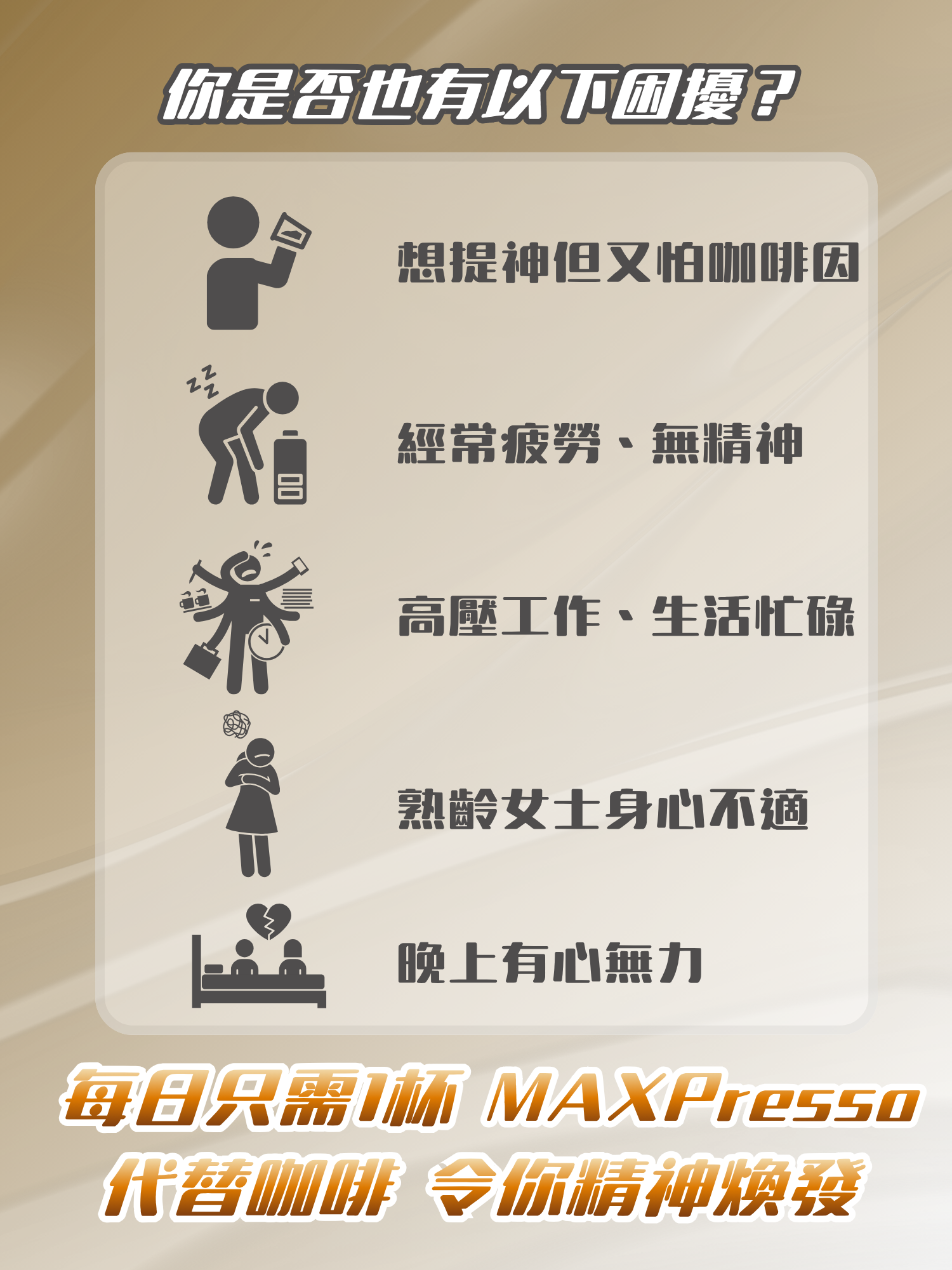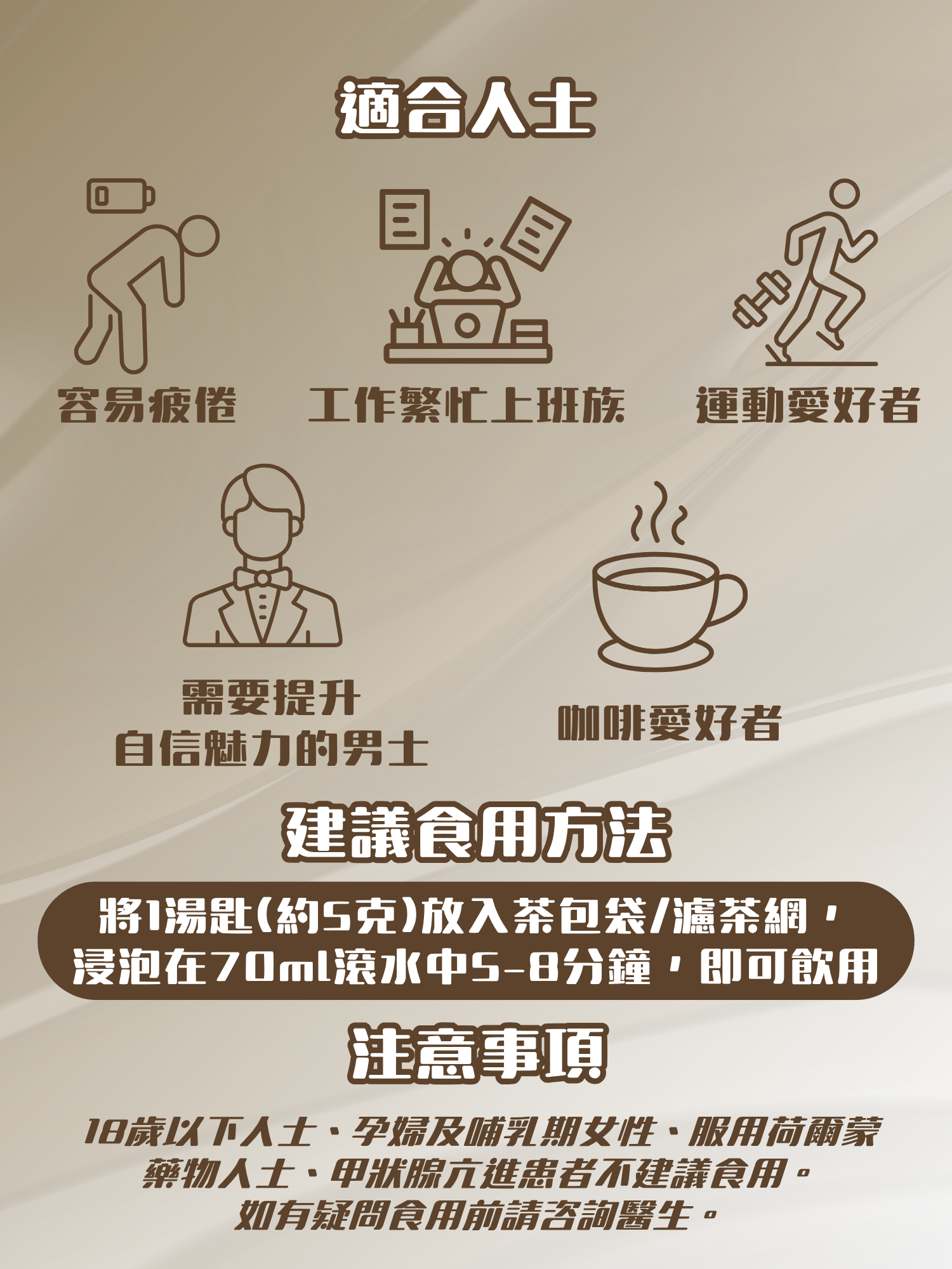 •容易疲倦•工作繁忙上班族•運動愛好者•需要提升魅力的男士•咖啡愛好者